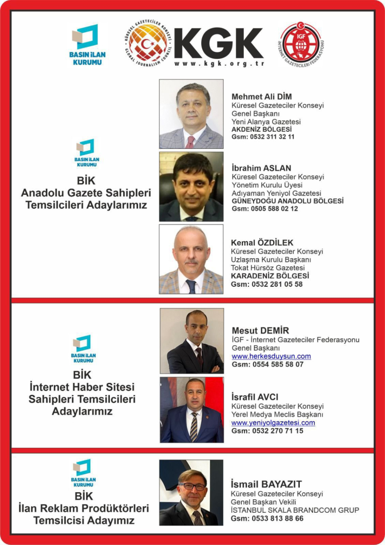 Konsey, basın sektörünün son yıllarda artan ekonomik sorunlarına dikkat çekerek, Basın İlan Kurumu'nun genel kurulunda ve yönetim kurulunda basın sektörünün daha bilinçli, nitelikli ve sektörün içinden gelen kişiler tarafından temsil edilmesinin önemini vurguladı. Konseyin desteklediği 6 adayın bu nitelikleri fazlasıyla taşıdığı ifade edildi. Bu isimler arasında gazete sahiplerini temsilen Mehmet Ali Dim, Kemal Özdilek ve İbrahim Aslan; internet haber sitelerini temsilen İsrafil Avcı ve Mesut Demir; ilan prodüktörlerini temsilen ise İsmail Bayazıt yer alıyor.