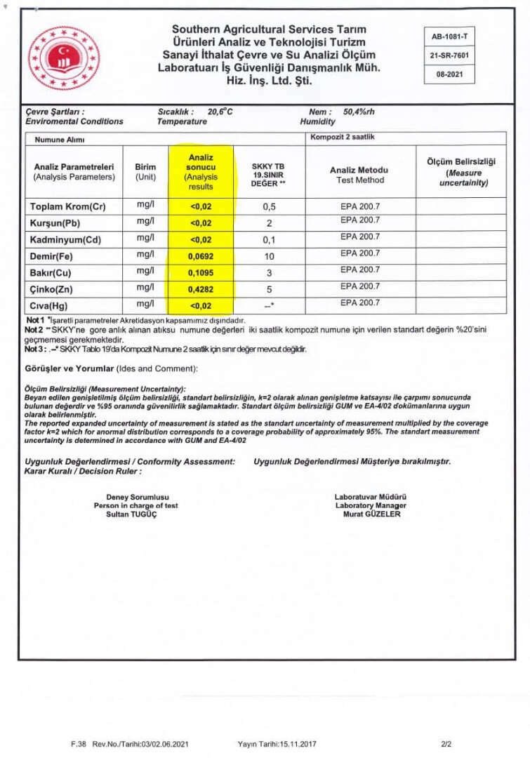 Alınan numune testlerini paylaşan Niğde Organize Sanayi Bölgesi Müdürlüğü, günlük 4000 ton suyu Akkaya Barajı aracılığıyla çiftçilere sağlıyor.