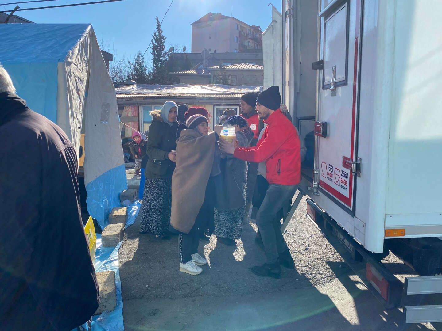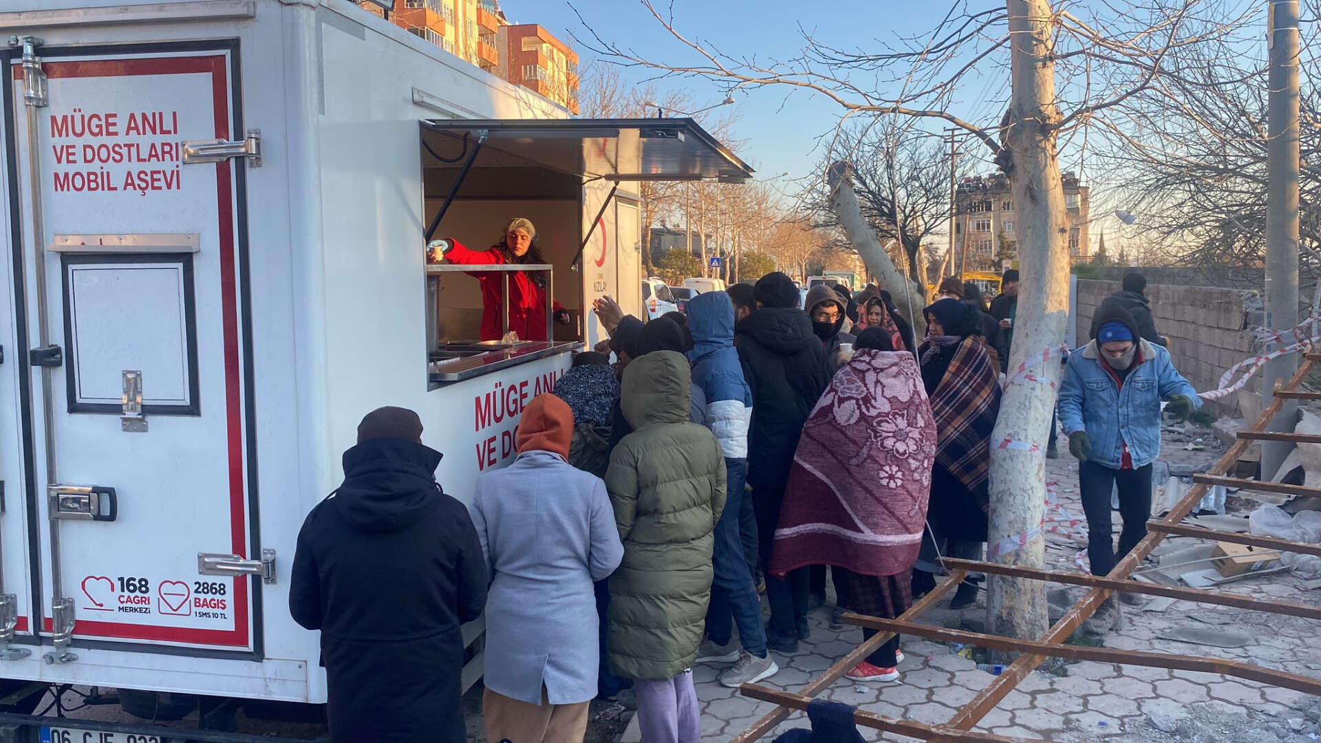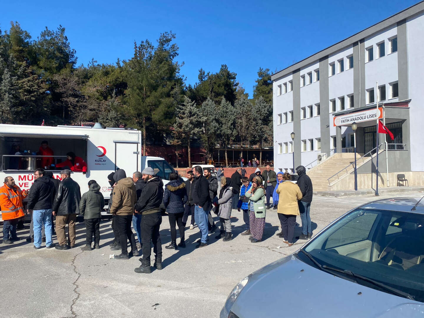Mobil aş evi aracıyla, deprem bölgesinde yer alan vatandaşlara ve çalışmalar yürüten ekiplere çorba ve yemek ikramında bulunuluyor.