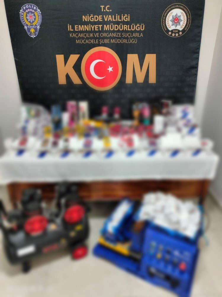 Niğde Emniyet Müdürlüğü KOM ekiplerince, devletimizi vergi kaybına uğratan kaçakçılıkla mücadele kapsamında yürütülen çalışmalarda, 26 Ekim 2022 tarihinde yapılan operasyonda, bir iş yeri ve bir ikamette yapılan aramalarda;