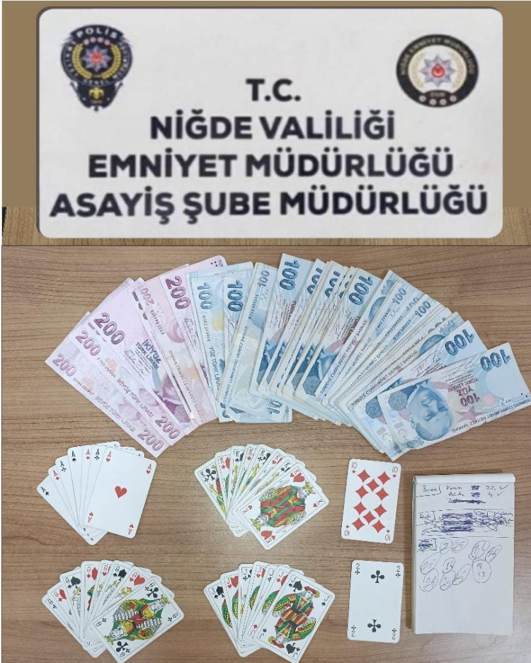 Niğde'de güvenlik güçleri kumar ve yasa dışı bahis operasyonlarına devam ediyor. Bu kapsamda İl Emniyet Müdürlüğü Asayiş Şube Müdürlüğü ekiplerince geçtiğimiz gün kumar oynanması için yer ve imkân sağladı tespit edilen kişi ve adrese yönelik yapılan çalışmada; şüpheli 1 şahıs yakalanarak hakkında adli işlem başlatıldı. Kumar oynadığı tespit edilen 6 şahsa ise 38 bin 550 TL idari para cezası uygulandı.
