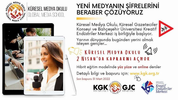 Küresel Gazeteciler Konseyi ve Bahçeşehir Üniversitesi Kreatif Endüstriler Merkezi iş birliği ile hayata geçirilecek olan Küresel Medya Okulu 2 Nisan’da İstanbul’da başlayacak. Dersler hibrit modelde yüz yüze ve online olacak. Geçtiğimiz ağustos ayında fikir olarak doğan aradan geçen sürede çok sayıda toplantı ile olgunlaşan Küresel Medya Okulu’nun ilk ayağı İstanbul’da Bahçeşehir Üniversitesi’nde düzenlenecek. Fiziki olarak 20 öğencinin kabul edileceği okula online olarak Türkiye ve dünyanın her noktasından katılım sağlanabilecek.