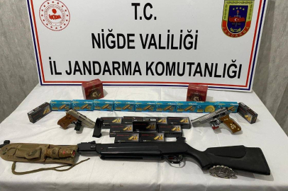 Niğde'nin Bor ilçesinde havaya ateş eden magandalar, jandarmanın takibi sonucu yakayı ele verdi. Öğrenilen bilgiye göre Bor'un Çukurkuyu kasabasında bulunan bir evin balkonundan havaya ateş açan O.Ö., C.S.Ö. ve V.Ö., bunu videoya aldı. Görüntülerin sosyal medyada paylaşılması üzerine harekete geçen Niğde İl Jandarma Komutanlığı Siber Suçlarla Mücadele Şube ekipleri, yaptıkları çalışma sonucu şahısların kimliğini tespit etti. Başlatılan soruşturmanın ardından kimliği tespit edilen şahısların adreslerinde yapılan aramalarda 1 adet tabanca, 1 adet kuru sıkı tabanca, 1 adet havalı tüfek, bin 80 adet tabanca fişeği, 50 adet yivsiz av tüfeği fişeği, 1 adet kasatura ve 1 adet muşta ele geçirildi.