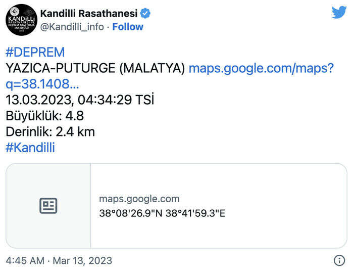 Kandilli ilk depremi 4.8 olarak açıkladı