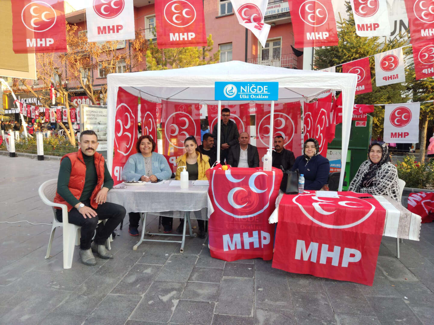 MHP MYK Üyesi Emrullah Türe yaptığı açıklamalarında: “Niğde İl Başkanlığımızın başlatmış olduğu üye kayıt çalışmaları kent meydanında hemşerilerimizin göstermiş oldukları teveccüh ile hız kesmeden devam etmektedir.” dedi.