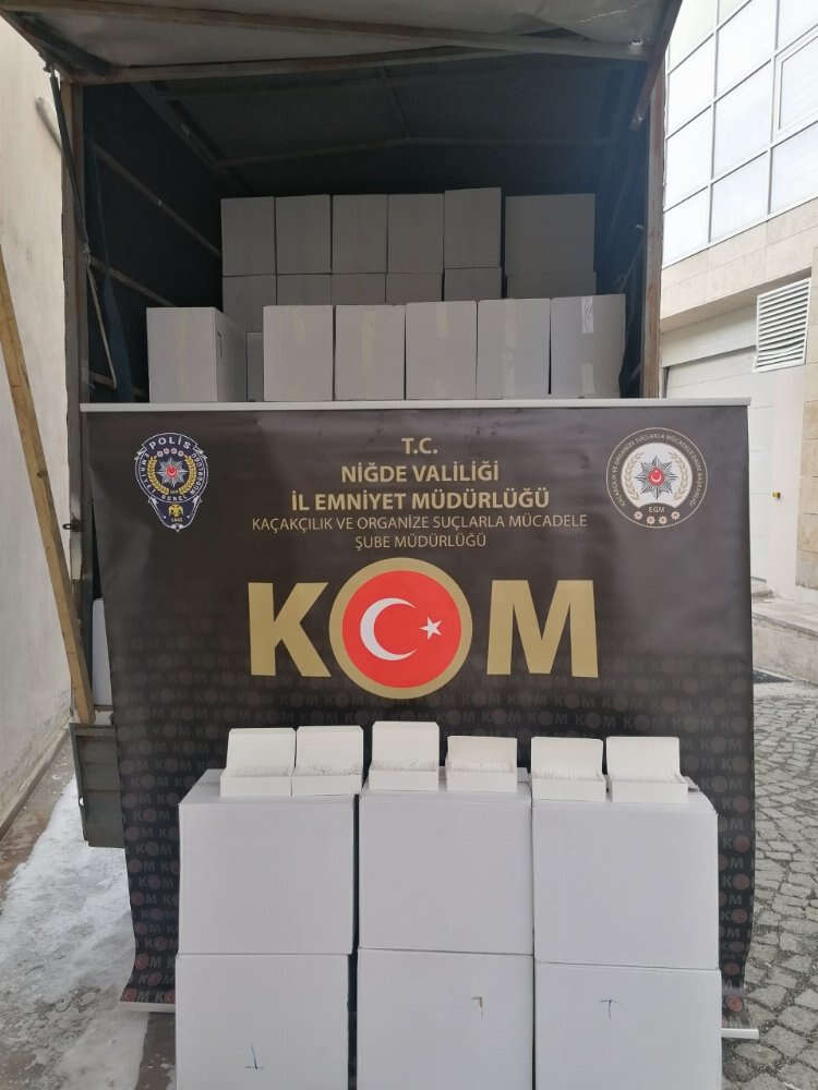 Niğde İl Emniyet Müdürlüğü Kaçakçılık ve Organize Suçlarla Mücadele Şube Müdürlüğü ekiplerince 15 Mart 2022 tarihinde gerçekleştirilen operasyonda iki kamyonette arama yapıldı.
