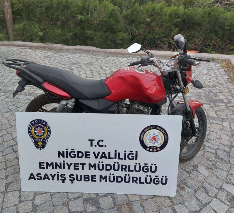 Niğde Asayiş Şube Müdürlüğü ekiplerince 17 Nisan 2022 tarihinde il merkezinde meydana gelen motosiklet hırsızlığı olayı ile ilgili çalışmalarda Ö.Ü. isimli şahıs hırsızlığa konu motosiklet ile birlikte yakalanarak gözaltına alındı.