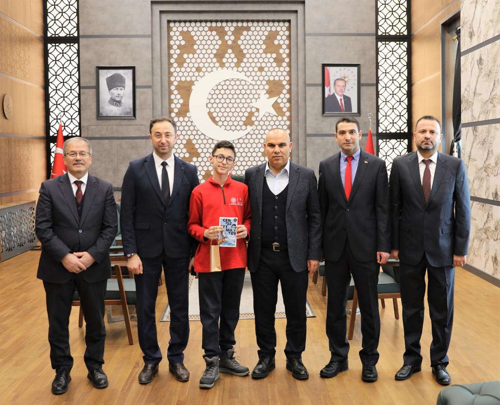 Niğde Valisi Sayın Mustafa Koç, 16. TÜBİTAK 2204-B ortaokul öğrencileri araştırma projeleri yarışmasında öncelikle Sivas’ta düzenlenen bölge finallerinde 1. olarak Türkiye finallerine katılma hakkı kazanan ve ardından Türkiye finallerinde bölgemizi temsil ederek Türkiye üçüncüsü olan Akşemseddin Bilim ve Sanat Merkezi öğrencisi Rüzgâr Egehan Uçan, İl Milli Eğitim Müdürü Halil İbrahim Yaşar, okul müdürü ve danışman öğretmeni makamında ağırladı.