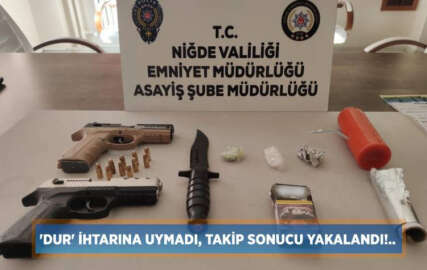 İl Emniyet Müdürlüğü; Asayiş Şube Müdürlüğü ekiplerince yürütülen çalışmalarda; il merkezinde yapılan önleyici devriye hizmetleri esnasında durumundan şüphenilen Niğde plakalı araç sürücüsüne dur ihtarında bulunuldu. Araç sürücüsünün dur ihtara uymaması üzerine ekipler tarafından takibe alındı.