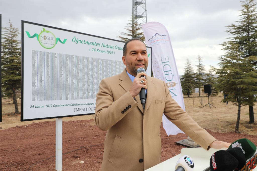Niğde Belediye Başkanı Emrah Özdemir, düzenlenen programda yaptığı konuşmada, kentte görev yapan her öğretmen için bir fidan dikme etkinliğini 2019 yılından bu yana gerçekleştirdiklerini ve geleneksel hale getirdiklerini belirtti.