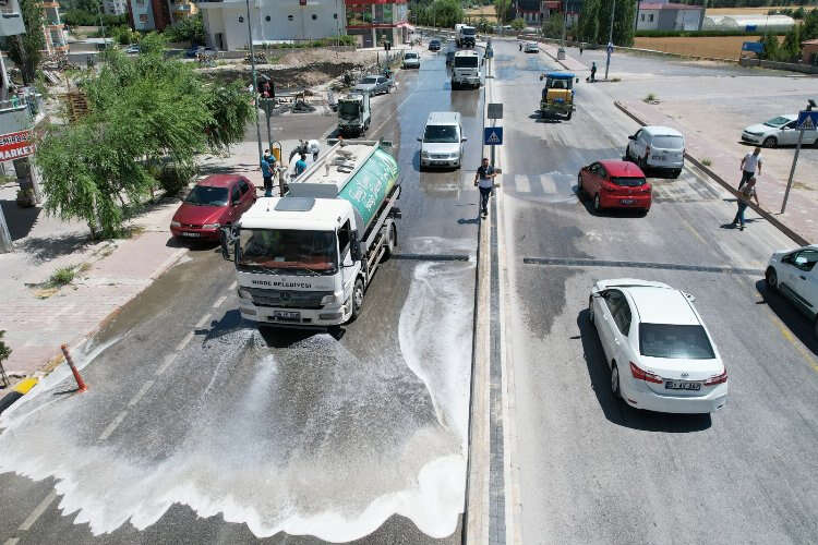 Niğde Belediyesi Temizlik İşleri Müdürlüğü ekipleri tarafından Faik Şahenk Bulvarı ve çevresinde temizlik yapıldı. Yollar arazözler tarafından yıkanırken kaldırımlar süpürgeciler tarafından temizlendi.
