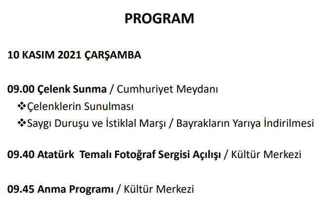 Töreninin ardından Niğde Kültür Merkezinde Atatürk Temalı Fotoğraf Sergisi ile Anma Programı düzenlenecek.