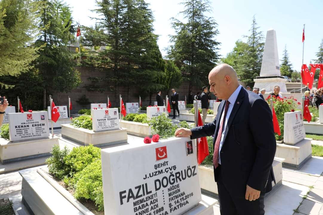 Niğde Valisi Mustafa Koç ve beraberindeki İl protokolünün, 15 Temmuz hain darbe girişiminde şehit düşen vatandaşların, Niğde Şehitliğinde ki kabristanlarını ziyaretleri ile başladı.