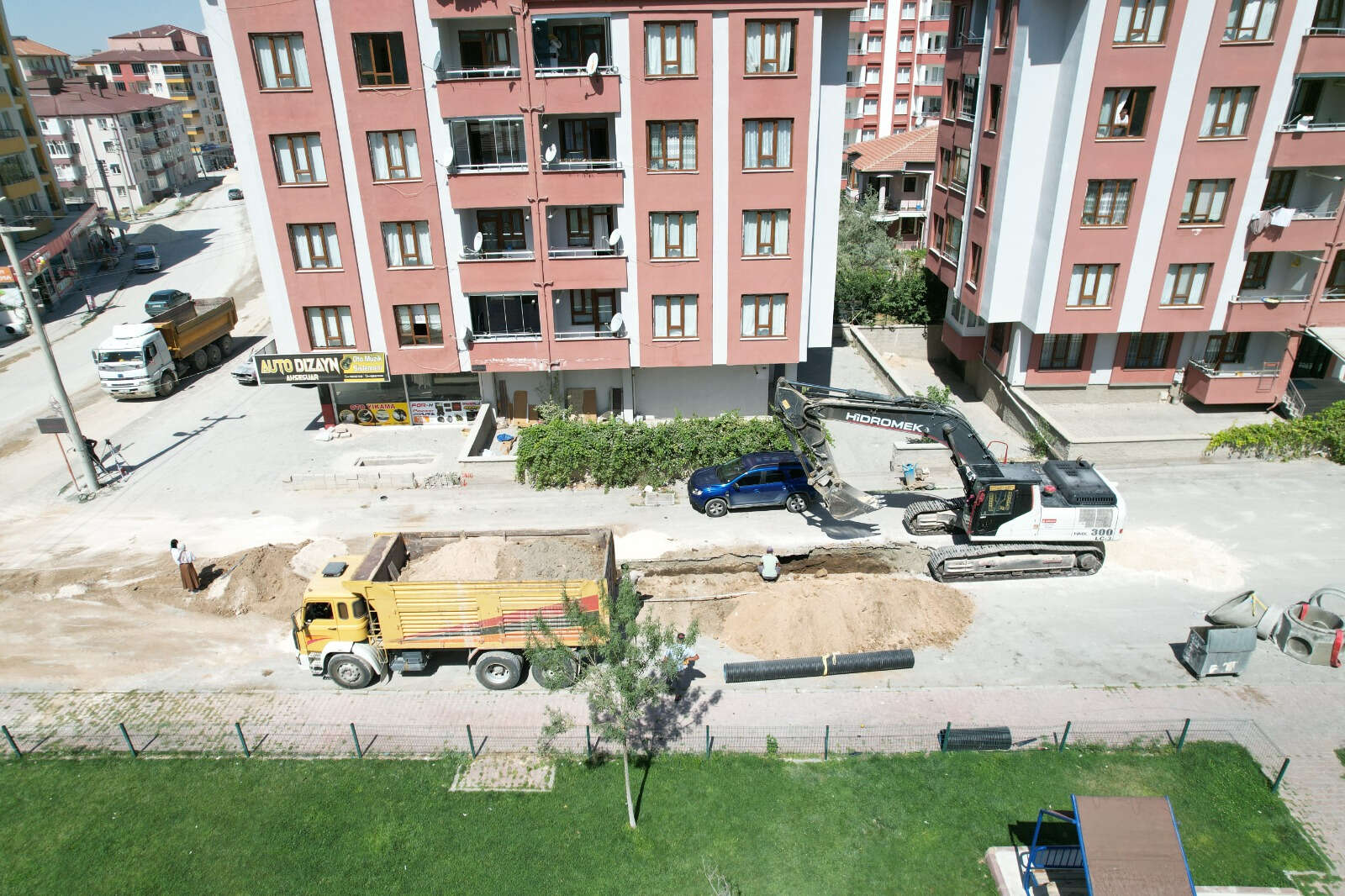 Ekipler, çalışmalar kapsamında, 9 metre genişlik ve 1600 metre uzunluğundaki sokakta, 800’lük diye tabir edilen 1500 metre koruge boru, 750 metre 600’lük koruge boru ile yağmur suyu hattı çekti. Yağmur suyu hattı çekilen hatta 300’lük koruge boru ile mazgal bağlantıları yapılarak 70 adet mazgal döşendi.
