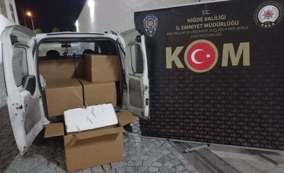 Niğde KOM ekiplerince 11 Mayıs tarihinde gerçekleştirilen çalışmalarda; 465 bin adet tütün mamulü makaron,200 kilo bandrolsüz paketli kıyılmış tütün, 500 adet mükerrer olarak kullanılacağı değerlendirilen orijinal bandrol, 3 adet sigara doldurma makinesi,1 adet sigara doldurmada kullanılan hava kompresörü ele geçirildi.