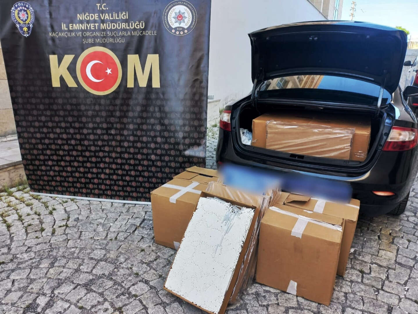 Devleti vergi kaybına uğratan kaçakçılıkla mücadele kapsamında yürütülen çalışmalarda, Niğde İl Emniyet Müdürlüğü KOM Şube Müdürlüğünce 30 Temmuz 2023 tarihinde, Adana-Niğde Otoyolu üzerinde şüphe üzerine durdurulan bir araçta yapılan aramada, gümrük kaçağı 75 bin adet tütün mamulü makaron ve 3 bin 200 paket sigara ele geçirildi.