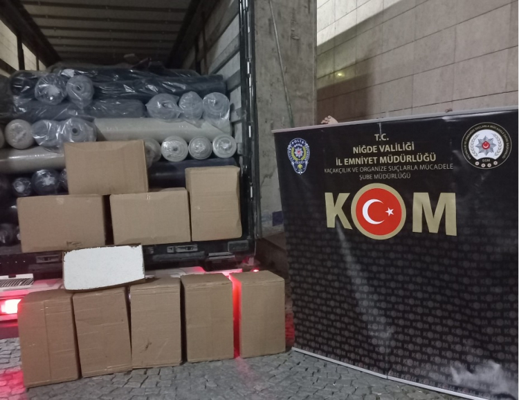 Niğde İl Emniyet Müdürlüğü Kaçakçılık ve Organize Suçlarla Mücadele Şube Müdürlüğü ekiplerince Kaçakçılıkla Mücadele Kanunu’na Muhalefet Suçu kapsamında düzenlenen operasyonlarda 12 şüpheli şahıs gözaltına alındı, şahıslardan 3'ü tutuklandı. Ateşli Silahlar ve Bıçaklar ile Diğer Aletler Hakkında Kanun Kapsamında İşlenen Suçlar kapsamında ise 2 şüpheli şahsa işlem yapıldı. Yapılan aramalarda; 2 milyon 725 bin adet makaron, 10 adet cep telefonu, 1 adet tabanca, 2 adet şarjör, 1 adet tüfek, 784 adet fişek ele geçirildi.