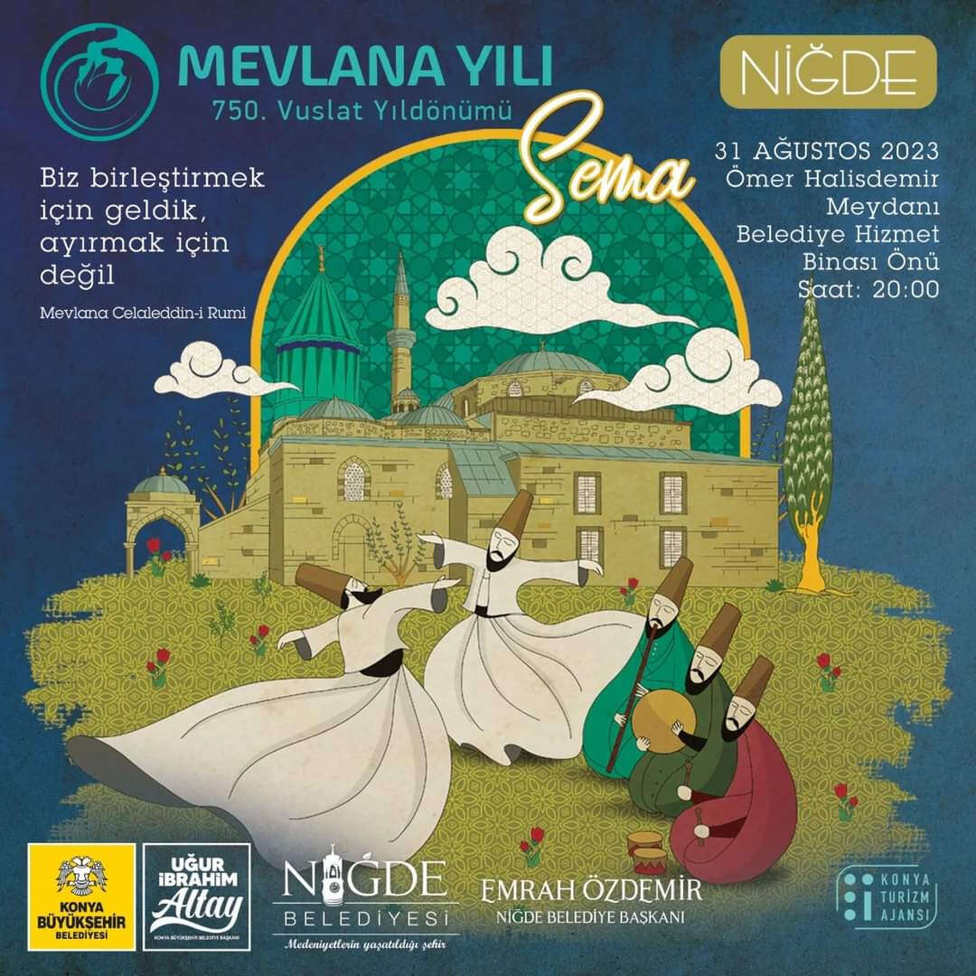 Niğde Belediyesi’nin Konya Büyükşehir Belediyesi ile birlikte, “2023 Mevlana Yılı” dolayısıyla düzenleyeceği programda Türk Tasavvuf Musikisi ve Sema Ayini Şerifi icra edilecek.