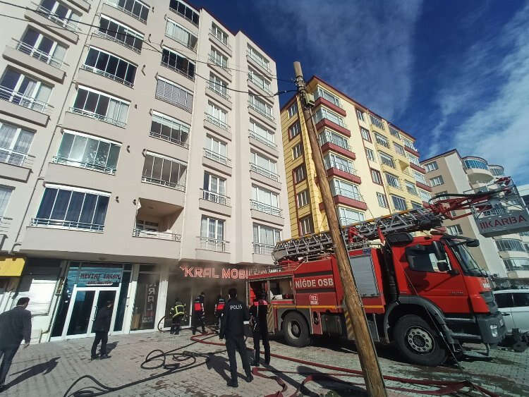 Niğde Belediyesi itfaiye ekipleri yagını üst katlara sıçramadan kontrol altına alırken aparmanda yaşayan bir kişi dumandan etkilendi.