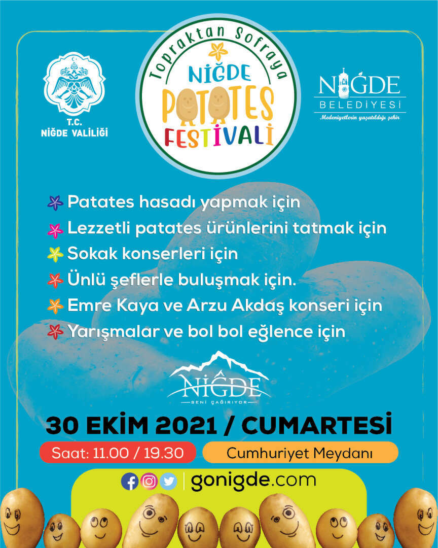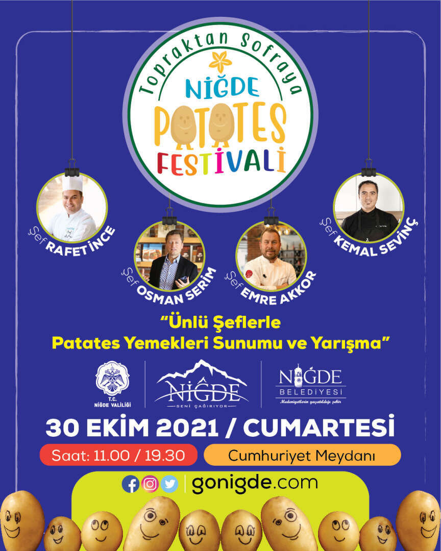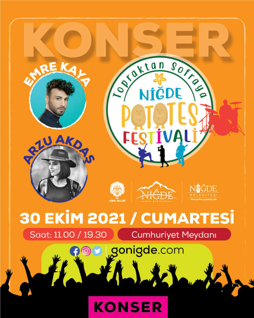 Ünlü şeflerle patates yemekleri sunumu ve yarışmaların da yapılacak olduğu festival kapsamında genç sanatçılardan Emre Kaya ve Arzu Akdaş da konser verecek.