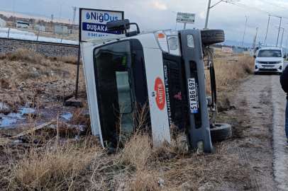 Niğde'de sürücüsünün direksiyon hakimiyetini kaybetmesi sonucu kamyon devrildi. Olay, Bor-Kemerhisar karayolunda meydana geldi. 51 ABG 697 plakalı sirke yüklü kamyon, sürücüsünün direksiyon hakimiyetini kaybetmesi üzerine yolun dışına çıkarak devrildi. Meydana gelen kaza sonrası olay yerine polis ekipleri sevk edildi. Kamyon sürücüsünün kazadan yara almadan kurtulması sevindirirken devrilen kamyon vinç yardımıyla kaldırıldı.