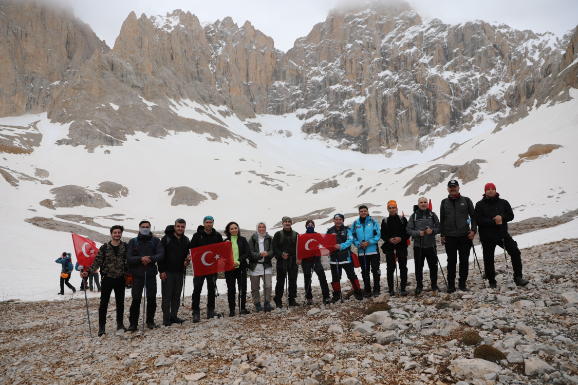 ağlı Ankara, Adana ve Niğde'den profesyonel 6 sporcu ise Dipsiz Göl'den zirve tırmanışına devam etti.