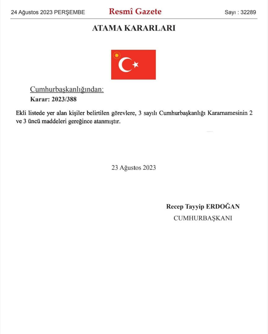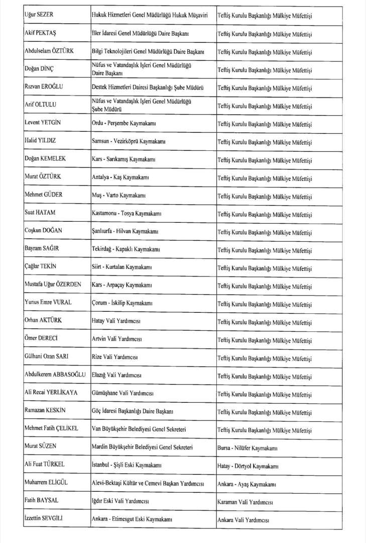 Buna göre Resmi Gazete'de yer alan atama kararları şu şekilde: