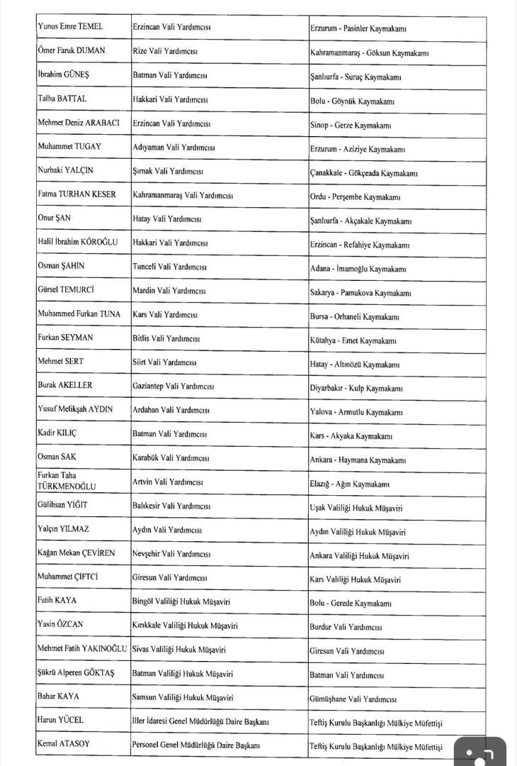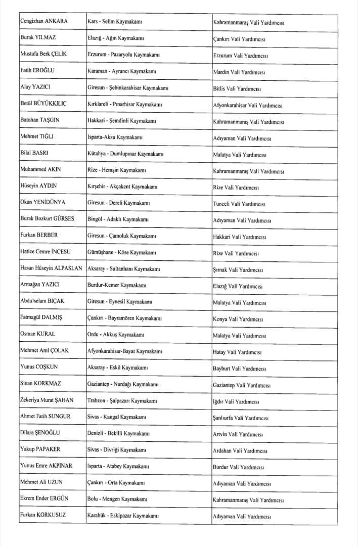 ÇOK SAYIDA KAYMAKAM VE VALİ YARDIMCISININ GÖREV YERİ DEĞİŞTİ