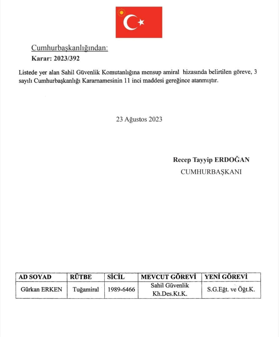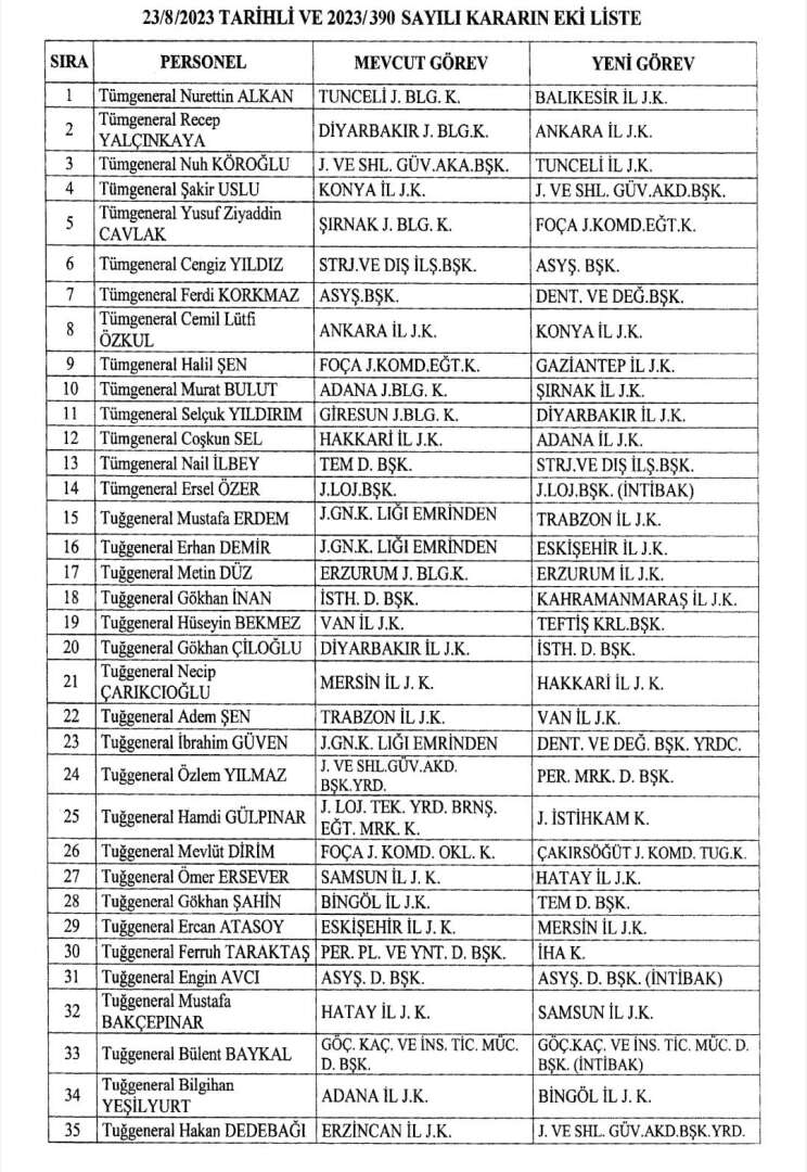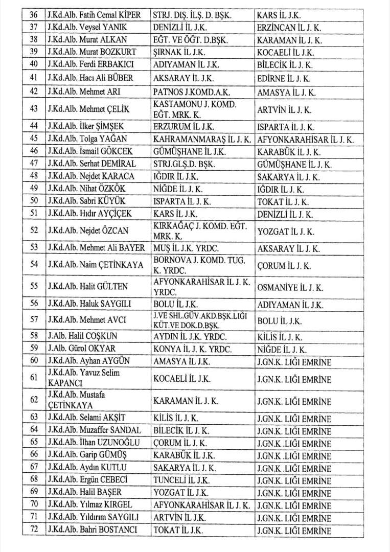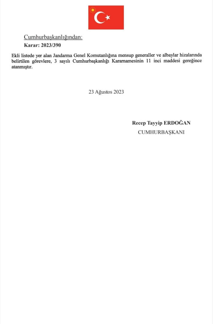 Cumhurbaşkanı Recep Tayyip Erdoğan'ın imzasıyla Resmi Gazete'de yayımlanan karara göre; 42 ilin jandarma komutanlıklarına atamalar yapıldı.