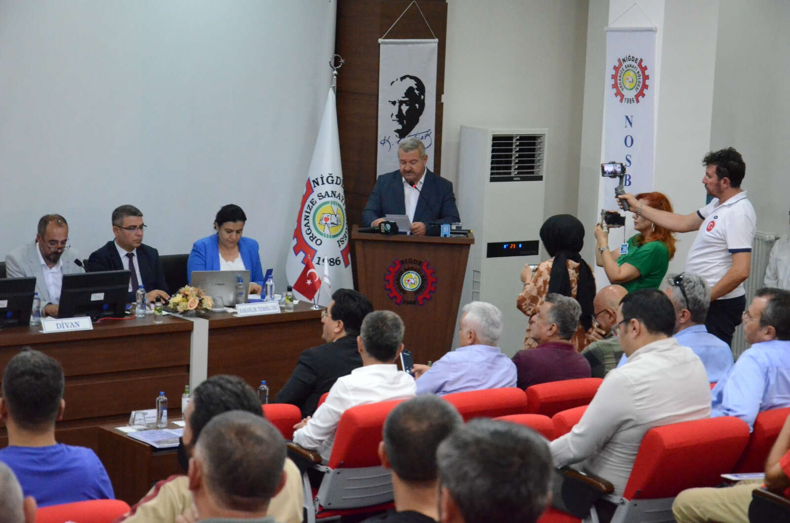 Niğde Organize Sanayi Bölgesi 2023 Yılı Olağanüstü Genel Kurul Toplantısı yapıldı. İki gündem maddesi ile toplanan kurulda alınan kararlar, oy çokluğu ile kabul edildi. Toplantıda gündem maddesi olarak, Maliye Hazinesi adına tescilli olan Niğde İli Merkez İlçesi Fertek Mahallesi 328 ada 110 no.lu 632.569,97 m2 büyüklüğündeki parselin yaklaşık 417.000 m2’lik bölümünün Niğde OSB’ye dahil edilmesi ve Yangınlara müdahale etmek için satın alınması düşünülen Delicili Köpük Kulesi İtfaiye aracının maliyetinin karşılanması için katılım payı alınması, oranlarının ve uygulamalarının belirlenmesi kararları toplantıya katılan sanayiciler tarafından oy çokluğu ile kabul edildi. Divan Başkanı ve Arifoğlu Teknoloji A.Ş. Yönetim Kurulu Başkanı Hasan Türkeş ile katip üyeler İbrahim Baloğlu ve Recep Şentürk ve Sanayi Teknoloji Bakanlığı Temsilcilerinin gözetiminde yapılan toplantıya, Niğde Valisi Dr. Cahit Çelik, Niğde Milletvekili Cumali İnce, Niğde OSB Yönetim Kurulu Başkanı Mustafa Altunbaş, Niğde Belediye Başkan Yardımcısı Ahmet Taciroğlu, Ak Parti Niğde İl Başkanı Av. Mustafa Özdemir ve bölgde sanayicileri katıldı.