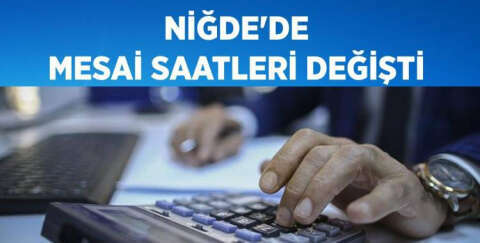 Niğde Valiliğinden yapılan açıklamaya göre; mesai saatleri değişti. Niğde'de memurlar sabah 08.30 - 12.30 ile öğlen 13.30 - 17.30 arasında mesai yapacak.