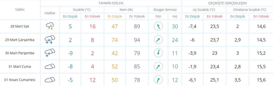 Meteoroloji Genel Müdürlüğü tarafından paylaşılan hava tahmin raporlarında 28.03.2023 tarihinden itibaren Niğde'de önce sağanak yağış, ardından yoğun kar yağışı bekleniyor. Mevsim normallerinin üzerinden seyreden sıcaklıklar devam eden ederken Meteoroloji Genel Müdürlüğü 28.03.2023 tarihinden itibaren soğuk hava yağış uyarısında bulundu. Hava sıcaklığının -8 dereceye kadar düşeceği tahmin edilirken haftanın bazı günlerinde yoğun yağmur ve kar yağışı bekleniyor.