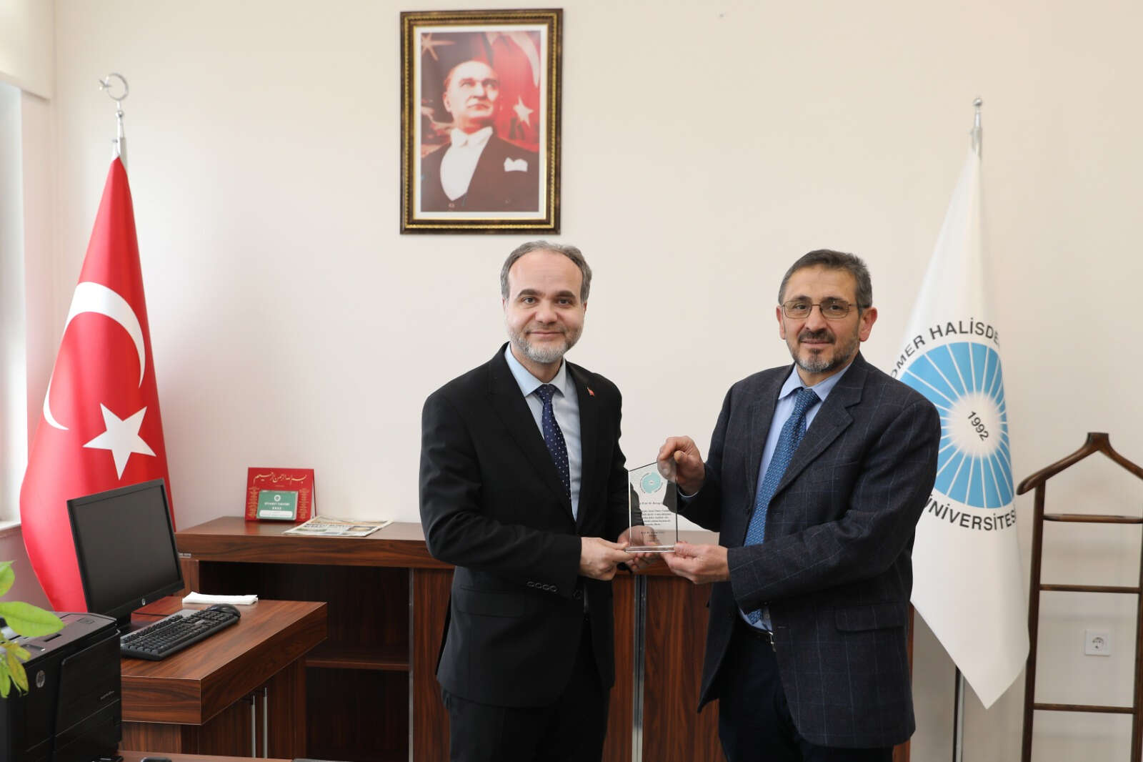 Törenlere katılarak açıklamalarda bulunan Rektör Prof. Dr. Hasan Uslu, görevlerini layıkıyla sürdüren ve şimdi de devreden akademisyenlerimize Üniversiteye sundukları katkıları ve değerli çalışmaları dolayısıyla teşekkür ederek kendilerine teşekkür plaketi takdim etti.