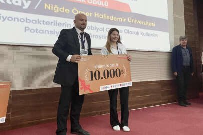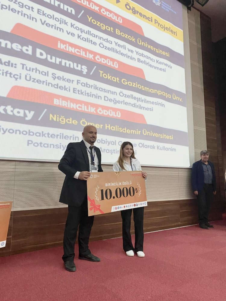 Niğde Ömer Halisdemir Üniversitesi Fen Edebiyat Fakültesi Biyoteknoloji Bölümü 4’üncü sınıf öğrencisi Iraz Aktay, “Siyanobakterilerin Mikrobiyal Gübre Olarak Kullanım Potansiyellerinin Araştırılması” başlıklı projesiyle Tarım Gıda ve Çevre Bilimleri Öğrenci Kategorisinde birincilik elde ederek para ödülünü almaya hak kazandı. Aktay’a ödülü Tokat Gaziosmanpaşa Üniversitesinde düzenlenen törenle takdim edildi.