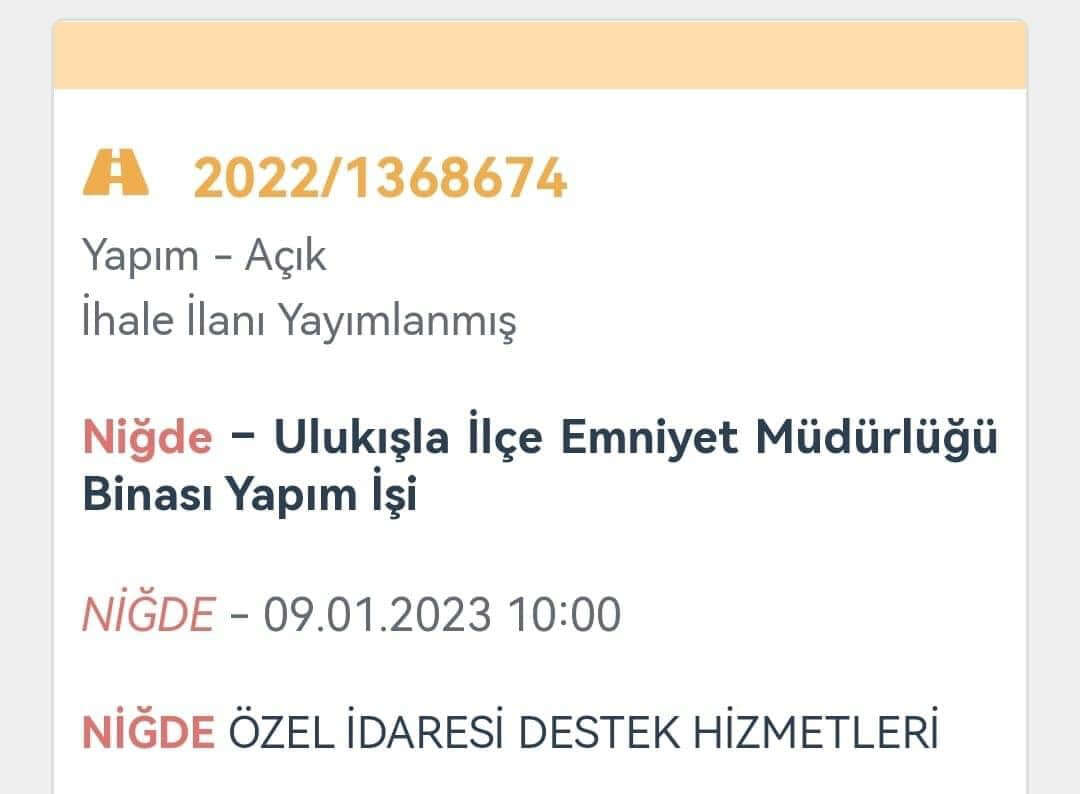 Ulukışla ilçemize emniyet müdürlüğü hizmet binası (karakol) yapım işini 9 Ocak 2023’te