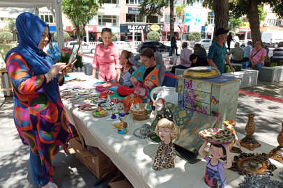 Kültür Sanat Sokağında; Halk Eğitim Merkezinde açılan kurslarda alınan eğitimle öğrenciler tarafından yapılan eserler sergilendi.