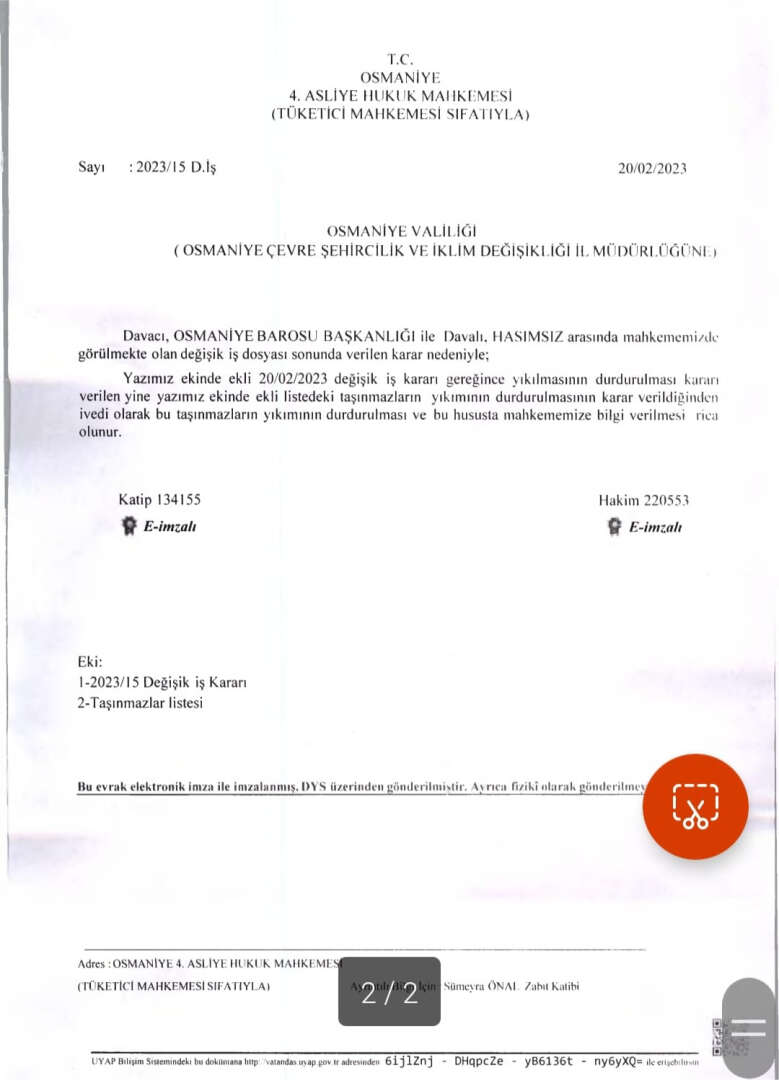 OSMANİYE'DE DEPREMDE AGIR HASARLI BİNALARIN YIKILMASINA YÜRÜTMEYİ DURDURMA KARAR ALINDI