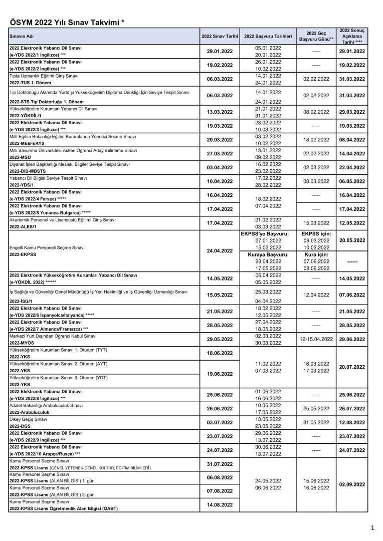 Ölçme Seçme ve Yerleştirme Kurumu(ÖSYM) 2022 yılı sınav takvimini duyurdu.