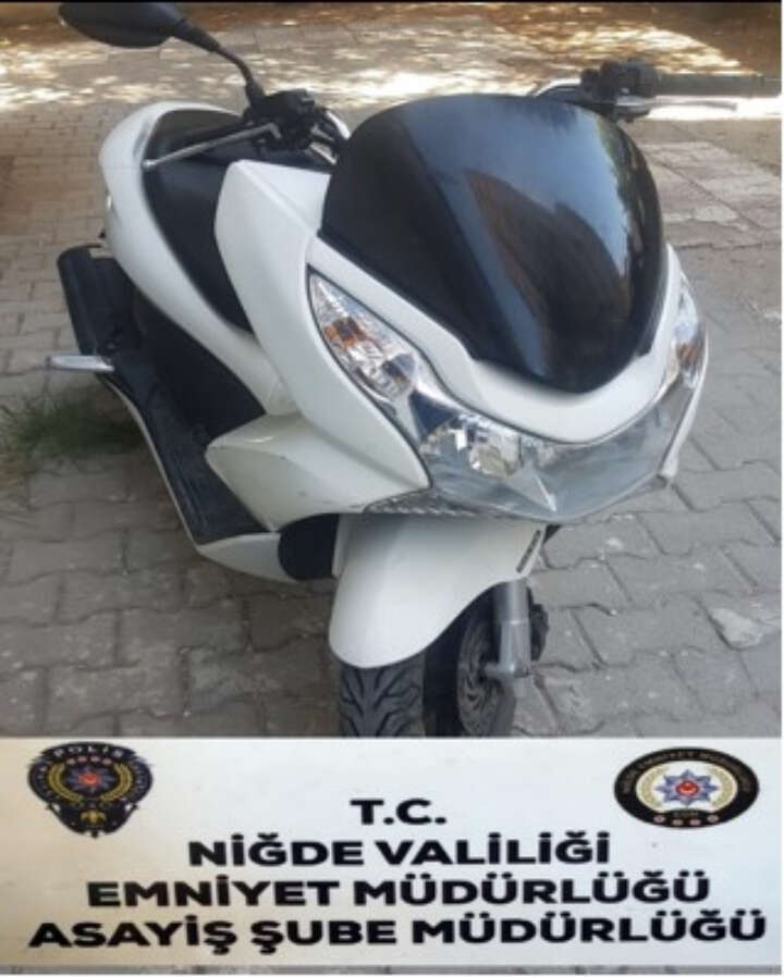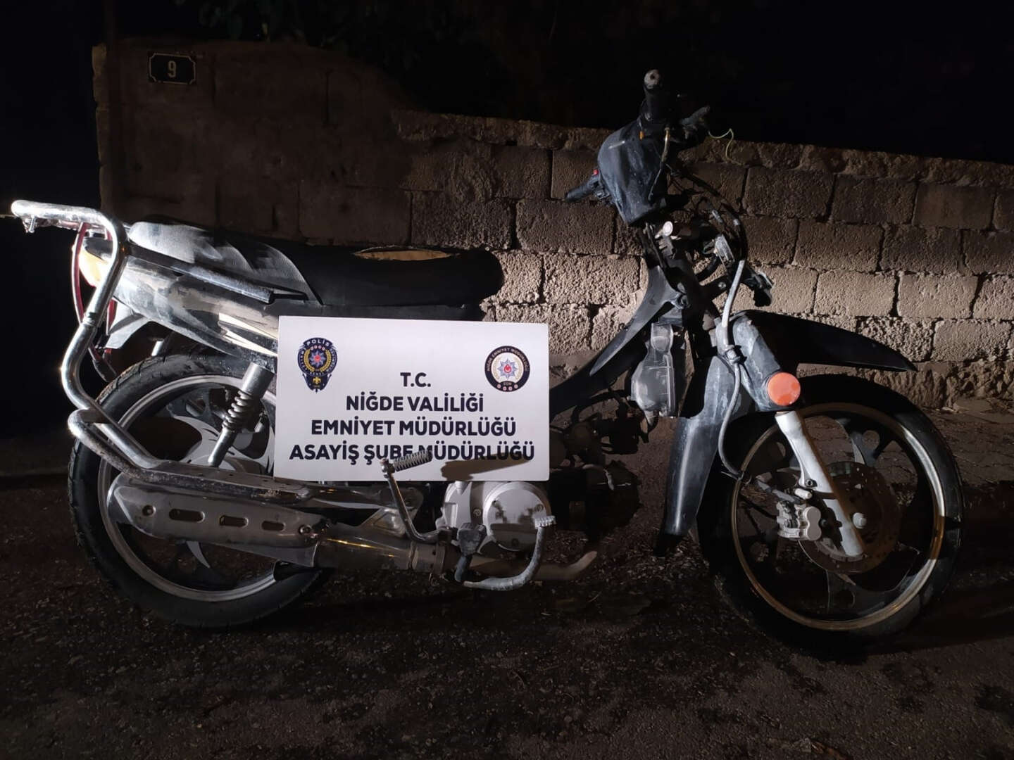 Geçtiğimiz Eylül ayı içerisinde Niğde Asayiş Şube Müdürlüğü ekiplerince yapılan çalışmalarda; 11 ayrı motosiklet hırsızlığı üzerine yapılan çalışmalarda 11 şüpheli belirlendi. Belirlenen şüphelilerden 5'i adli makamlarca tutuklandı. Çeşitli il ve ilçelerden çalıntı kaydı bulunan dört adet motosiklet ise sahibine teslim edildi.