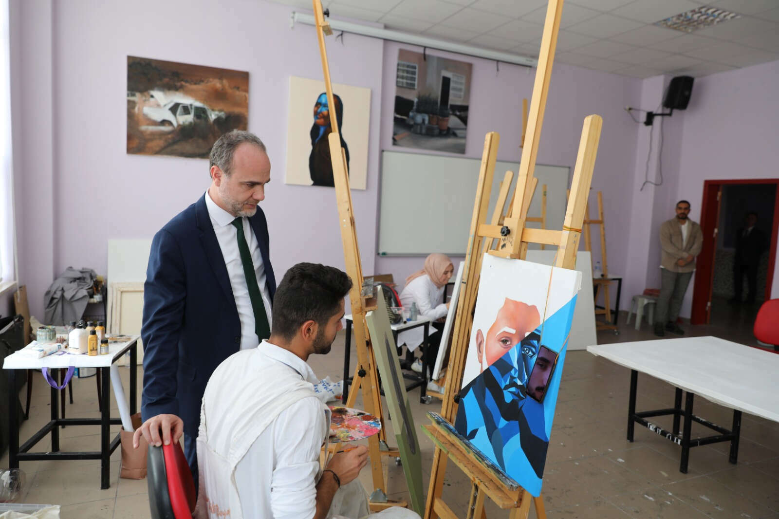 Rektör Uslu toplantının ardından Güzel Sanatlar Fakültesinde yer alan atölyeleri ziyaret ederek öğrencilerle bir süre sohbet etti.