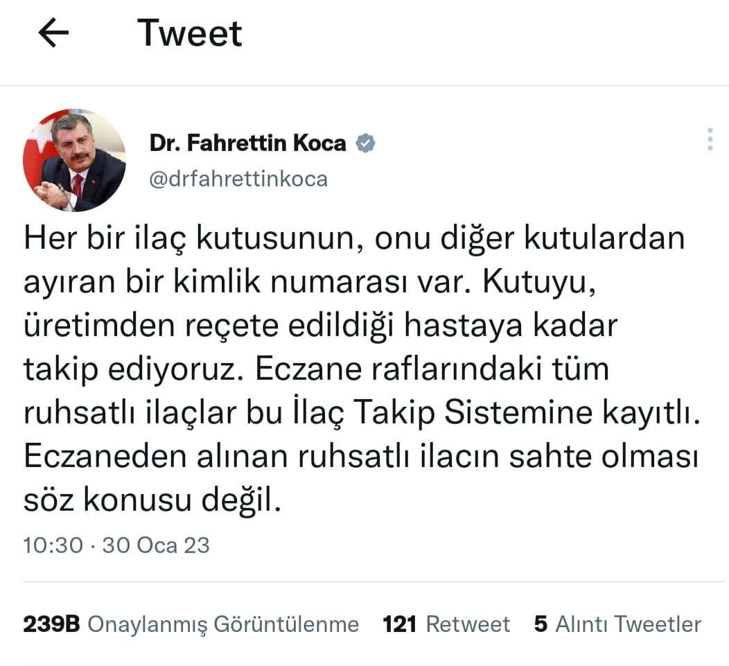 — Dr. Fahrettin Koca (@drfahrettinkoca) January 30, 2023