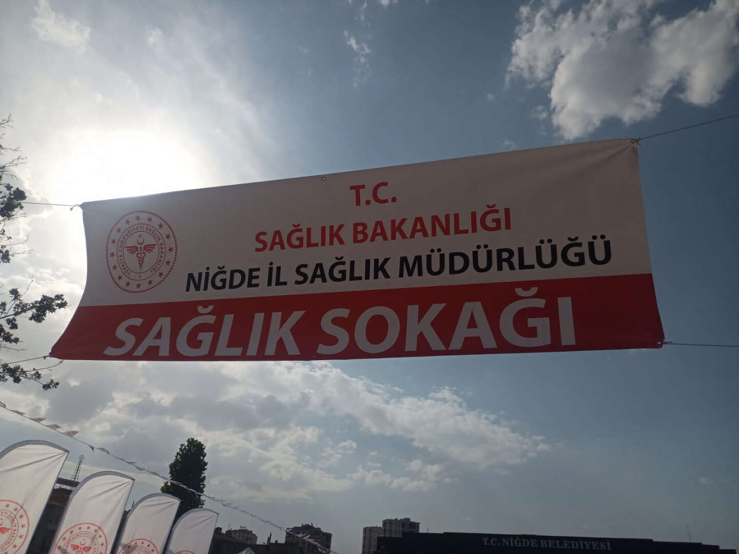 İl Sağlık Müdürlüğü öncülüğünde açılan Sağlık Sokağı, 1-3 Eylül 2022 tarihleri arasında Niğde Belediyesi binası önünde ziyaretçilerini bekliyor. Saat 13.00 ile 21.00 arasında ziyaretçilerini bekleyen Sağlık Sokağı ücretsiz hizmet verecek.