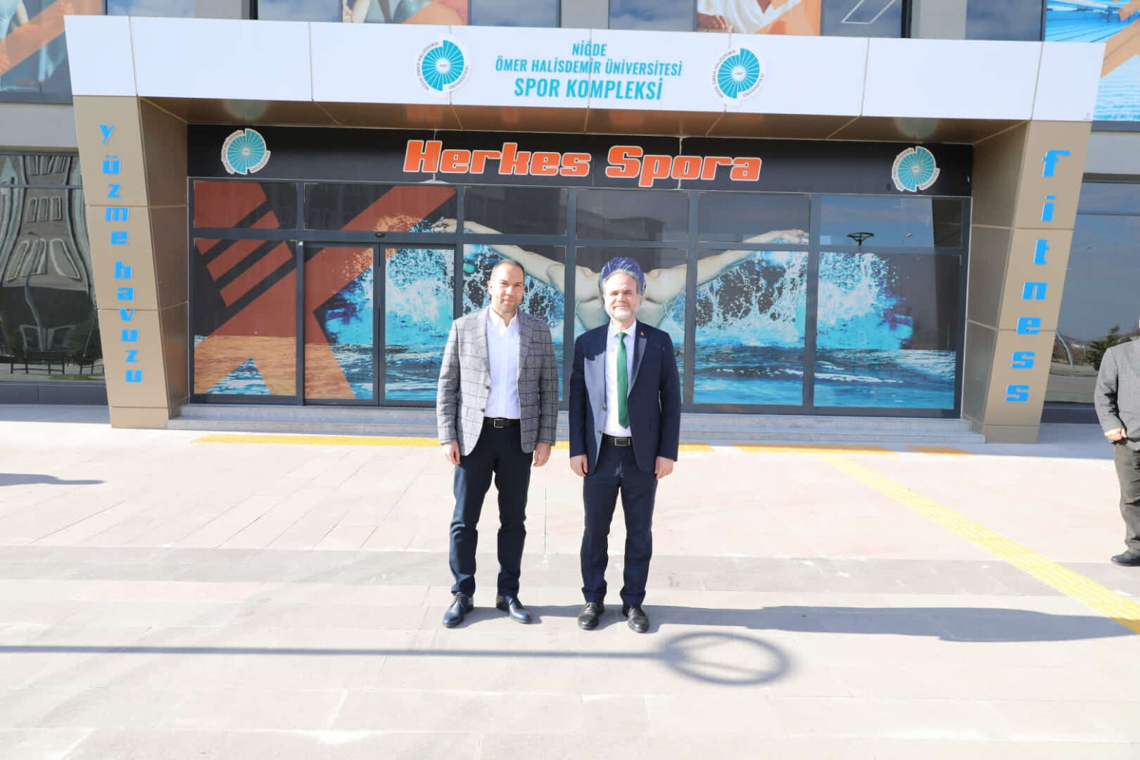Niğde Belediye Başkanı Emrah Özdemir, Niğde Ömer Halisdemir Üniversitesi Rektörü Prof. Dr. Hasan Uslu ile birlikte üniversitede açılan spor kompleksinde incelemelerde bulundu.