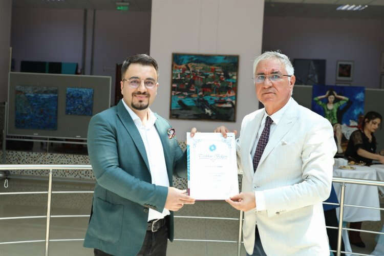 Doç. Dr. Kerim Laçinbay Resim Atölye Öğrencileri Sergisi: İlk 11 adlı etkinlik sonunda Rektör Yardımcısı Prof. Dr. Hamdi Doğan, emeği geçenlere teşekkür belgeleri takdim etti.