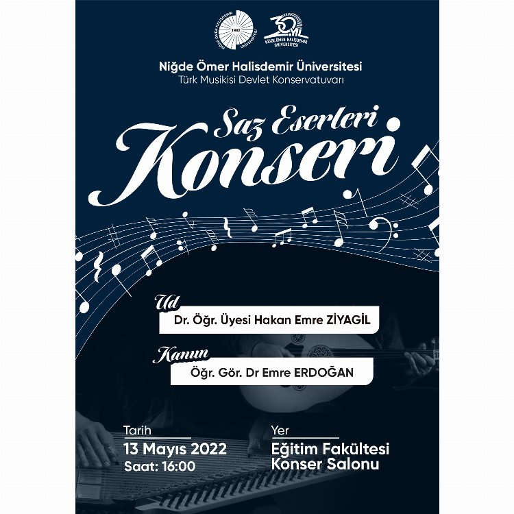 Niğde Ömer Halisdemir Üniversitesi'nin Eğitim Fakültesi Kongre Salonunda düzenlenecek Saz Eserleri Konseri'ne katılım ücretsiz olarak sağlanabilecek.