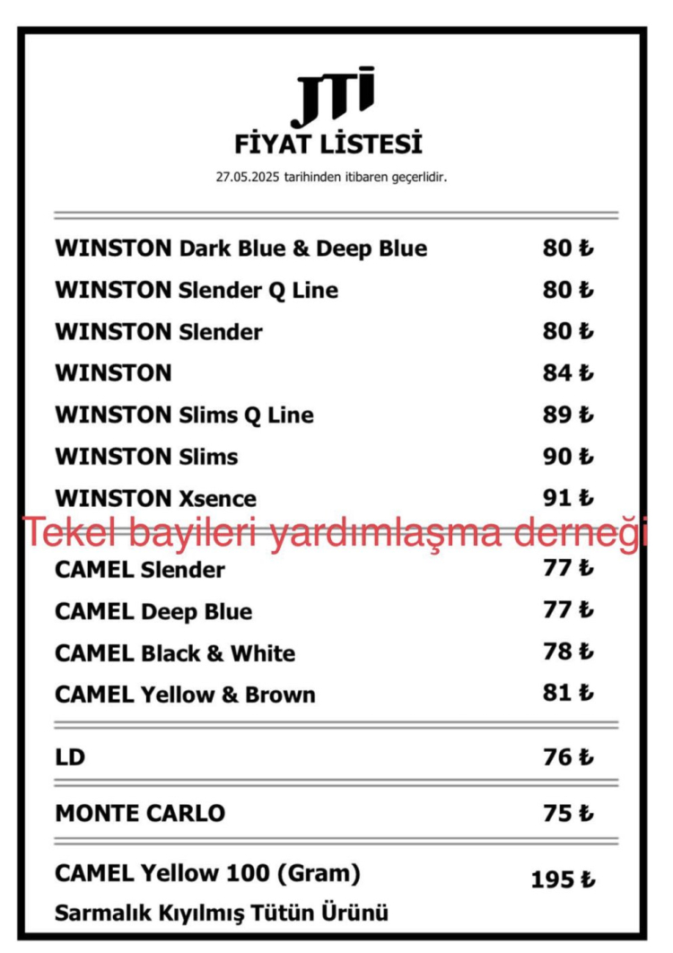 Zam sonrası JTİ marka sigaraların en ucuzunun 75 lira, en pahalı sigaranın ise 91 lira olduğu belirtildi.