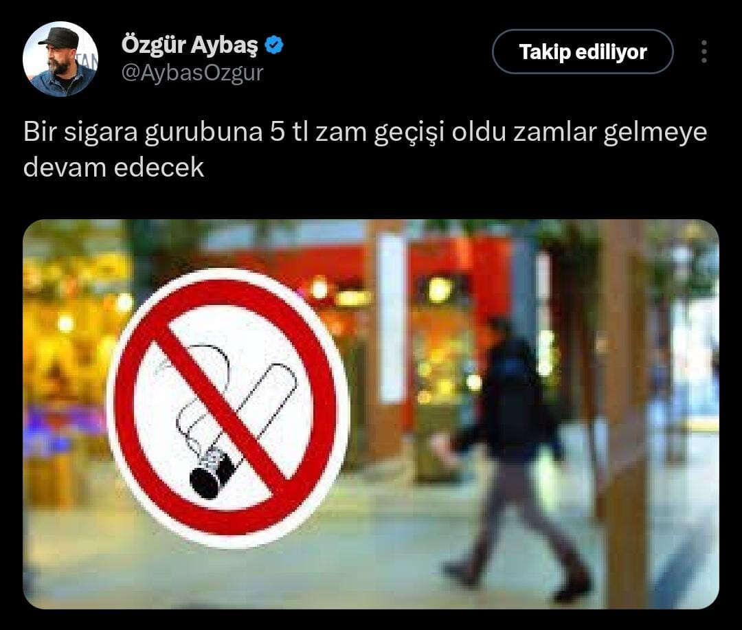 Ayrıca diğer sigara gruplarına da birkaç gün içinde yeni zamların yapılabileceğini dile getiren Aybaş; "Maliyet zammı, firma zammı, kur zammı hepsi yapılacak bunların. Alkollü ürünlerde yüksek oranda zam geçişi olacak. Çünkü her 6 ayda bir hem alkollü içeceklere hem de tütün ürünlerine ÖTV zammı yapılıyor." ifadelerine yer verdi.