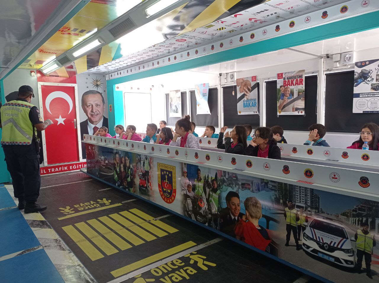 Valilik otoparkında gerçekleştirilen etkinlikte öğrencilere ilk olarak yayalara yol verilmesi gerektiği ve kırmızı ışıkta beklenilmesi gibi uygulamalı eğitimler verildi.