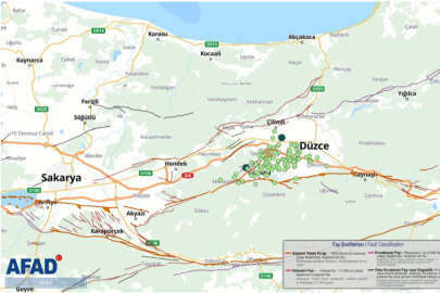 Bugün (23 Kasım 2023) sabaha karşı 04:08'de Gölyaka (Düzce) da meydana gelen Mw 5.9 büyüklüğündeki depremden sonra saat 09:30 itibarıyla büyüklükleri 0.9 ile 4.3 arasında değişen 106 adet artçı deprem meydana geldi.