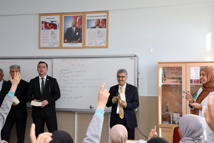 Ovalıbağ Hasan Süleyman Filibeli İlkokulu ve Ortaokulu öğrencileriyle buluşan Vali Çelik, bu okulun da fiziki durum ve eğitim faaliyetleri durumu hakkında da bilgi aldı.